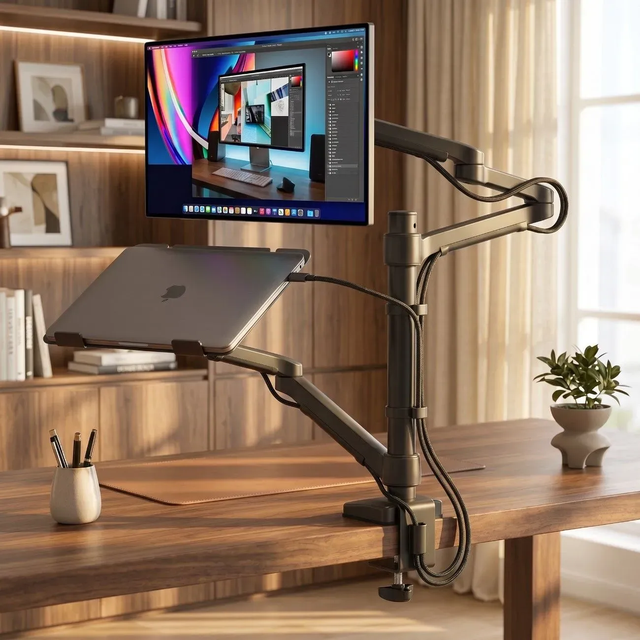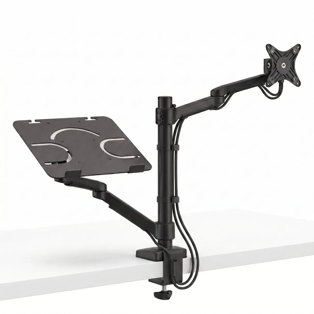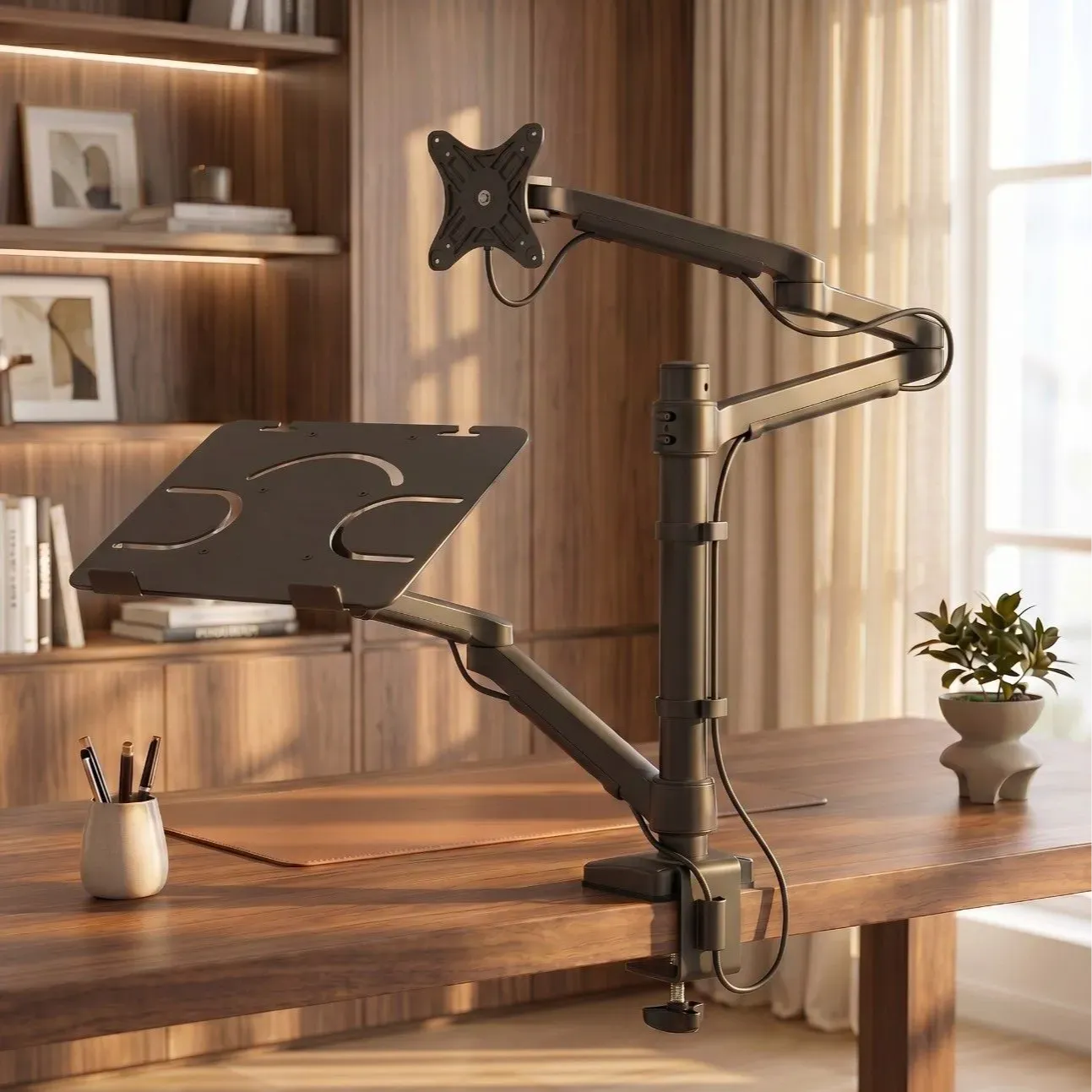 Upgrade your workspace with this versatile monitor arm designed for modern productivity. Seamlessly support both your monitor and laptop at the same time, while enjoying smooth adjustability, ergonomic comfort, and a clean, clutter-free setup.